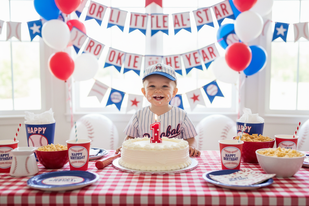 Complete baseball-themed first birthday party kits with everything you need for an unforgettable celebration.